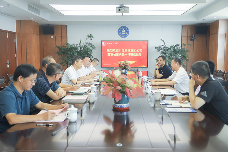 本网讯  8月28日,安徽省引江济淮集团公司党委书记、董事长王庆武一行来校调研交流。学校在紫云路校区徽风楼21楼第二会议室召开座谈会,校党委书记马文革主持会议。引江济淮集团公司党委委员、副总经理胡义文、党委委员、总院公司党委书记、董事长陈立华、办公室主任马志华出席会议;学校办公室、科技处、科技成果转化处、就业处、合作发展处、继续教育学院等单位主要负责人参加会议。
